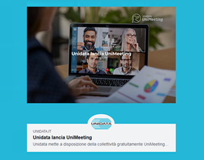 Al fine di sostenere famiglie e imprese nella loro comunicazione a distanza, Unidata ha messo a disposizione della collettività gratuitamente UniMeeting, il nuovo servizio di comunicazione video HD e video conferenza con caratteristiche altamente performanti.