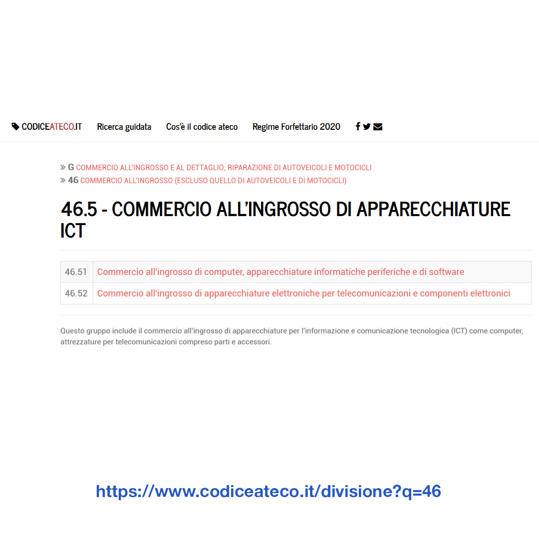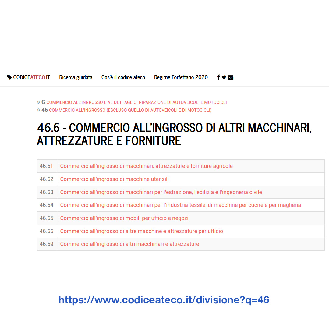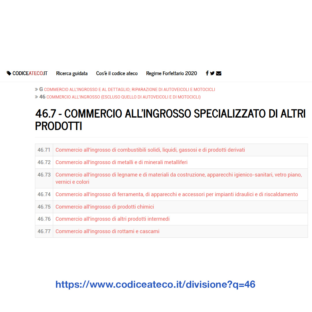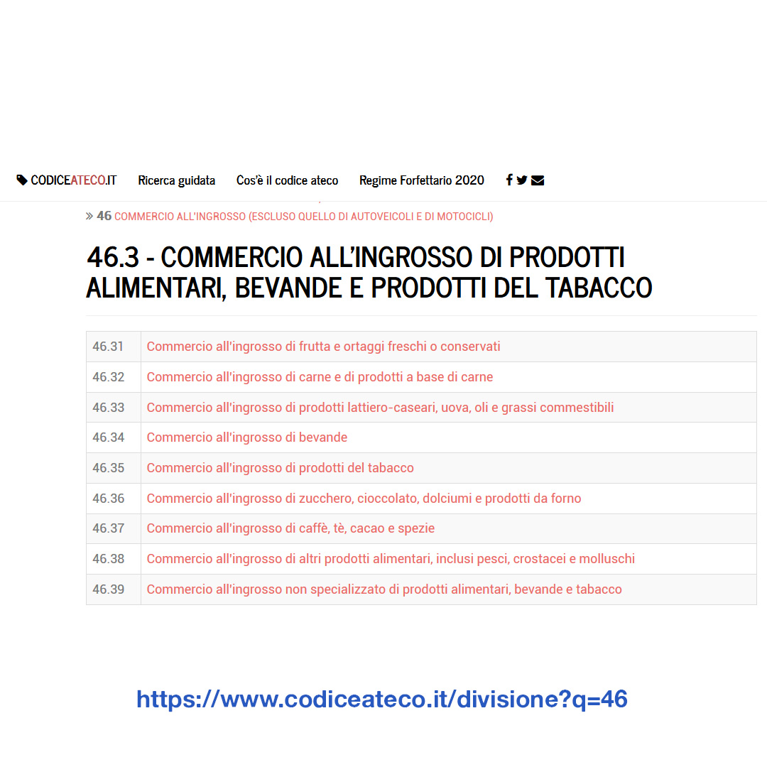 3. Sito dell’ATECO: Commercio all’ingrosso – codice 46